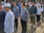 Sekda didamping Kepala Dinas Tanman dan Hortikultura, Sunarno, Kepala Dinas Ketahanan Pangan, Fajar Alamsyah dan Tim Pengendali Inflasi Daerah(TPID) Kabupaten Tanjab Timur dan petani mandiri melakukan panen bersama cabai merah besar dan cabai merah keriting di lahan pertanian, Selasa (13/2/2024).