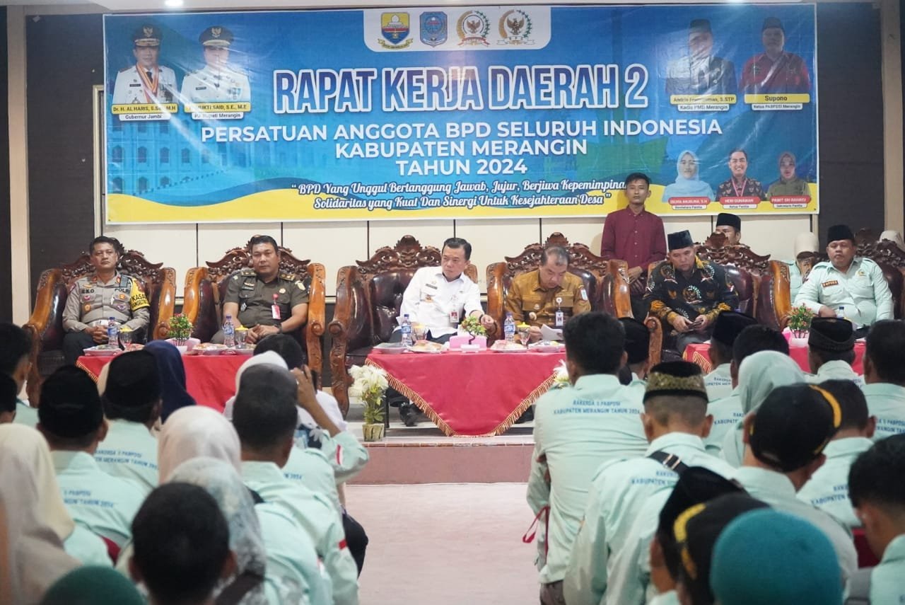 Adapun Tema Rakerda II Persatuan Anggota BPD Seluruh Indonesia Kabupaten Merangin Tahun 2024 ini adalah “BPD Yang Unggul Bertanggung Jawab, Jujur, Berjiwa Kepemimpinan, Solidaritas yang Kuat, Dan Sinergi Untuk Kesejahteraan Desa”.