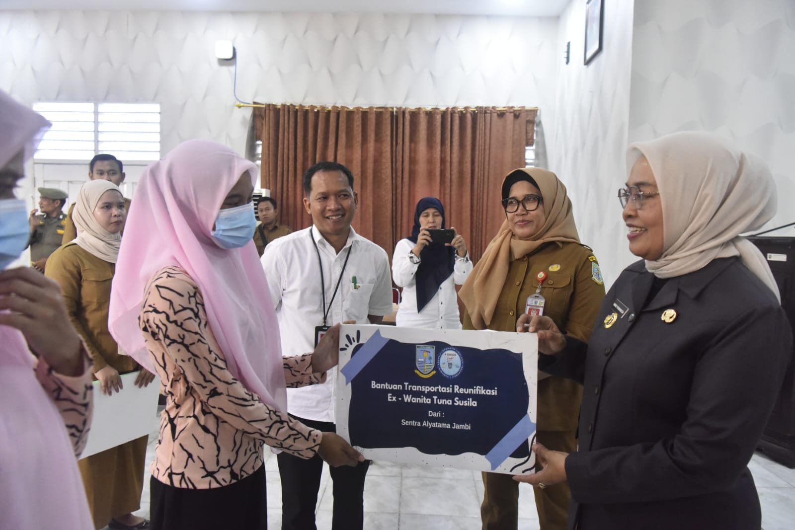 Pj Wali Kota Jambi, Sri Purwaningsih memulangkan 13 orang Reunifikasi Wanita Tuna Susila eks lokalisasi ilegal Payo Sigadung ke kampung halamannya masing-masing.