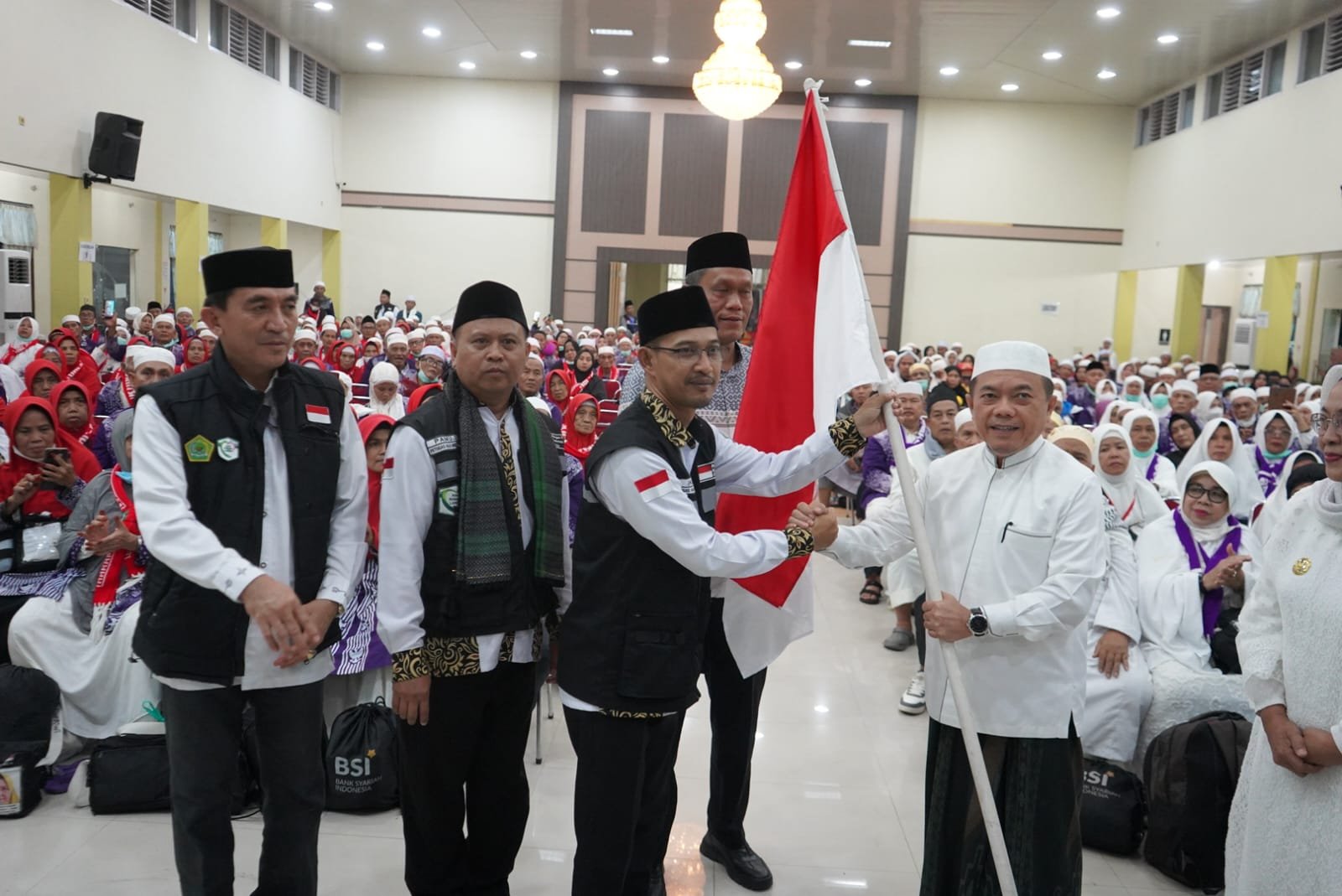 “Semoga kesehatan menyertai bapak dan ibu sekalian dan menjadi haji yang mabrur, haji yang baik yang diterima oleh Allah SWT. Selesainya pelaksanaan rukun Islam kelima perjalanan memenuhi panggilan Allah ke Baitullah. Artinya telah menyempurnakan rukun Islam,” ungkap Gubernur Al Haris.