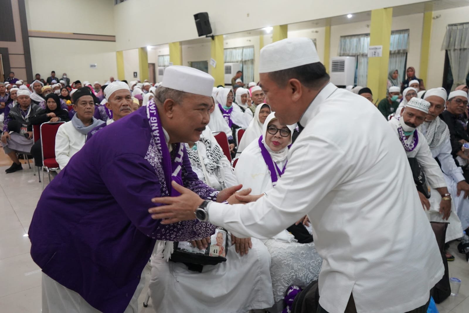 Gubernur Al Haris mengucapkan selamat datang kepada jamaah haji Provinsi Jambi dari Kloter BTH 27  di Asrama Haji Jambi, Kota Jambi.