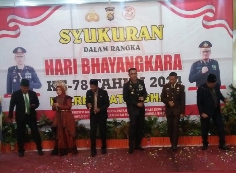 Sekda Batanghari M Azan menghadiri syukuran HUT Bhayangkara ke-78 yang berlangsung di Ruang Pola Kantor Bupati Kabupaten Batang Hari.
