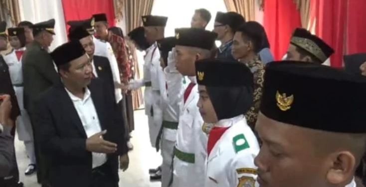 SWARAJAMBI, MUARASABAK – Bupati Tanjab Timur Romi Hariyanto, mengukuhkan 30 anggota Pasukan Pengibar Bendera Pusaka (Paskibraka) yang terdiri dari 15 putra dan 15 putri di Pendopo Rumah Dinas Bupati pada Jumat (16/8/2024).