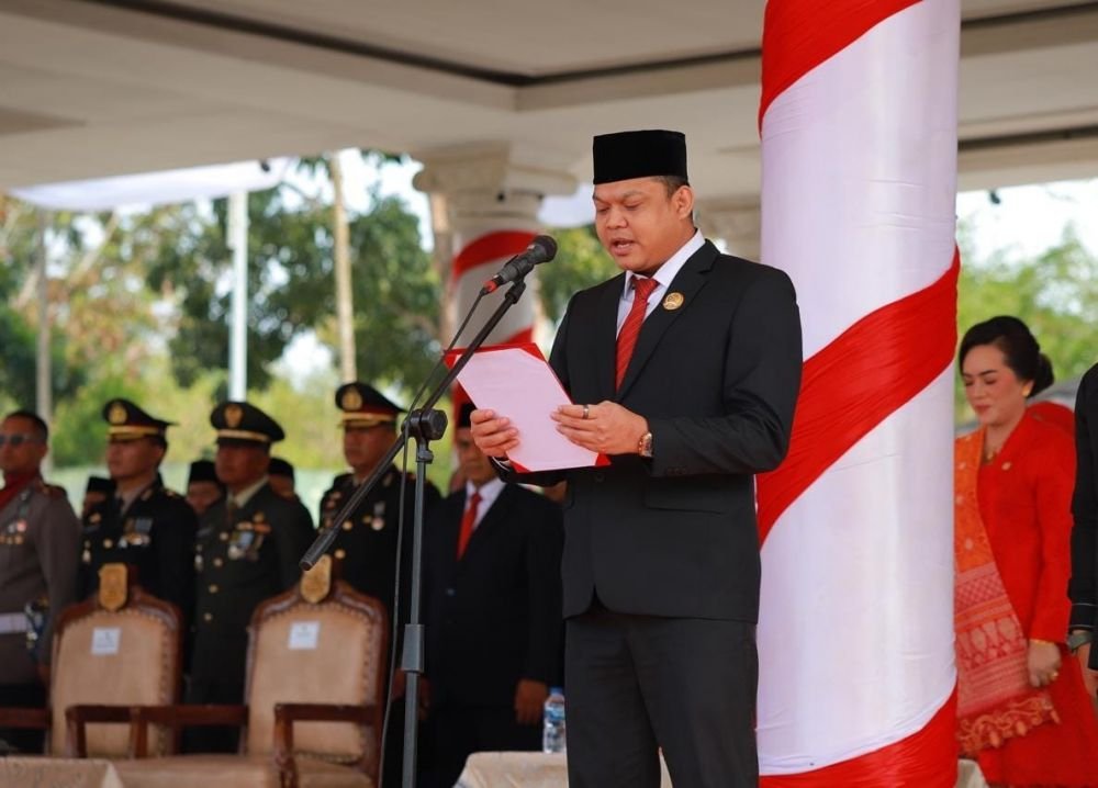 Ketua DPRD Muarojambi Yuli Setia Bakti mendapat kehormatan untuk membacakan teks Proklamasi Kemerdekaan Republik Indonesia. Upacara pagi ini dihadiri oleh pejabat tinggi dari TNI, POLRI, Forkopimda, aparatur sipil negara Pemkab Muarojambi, dan pelajar, yang turut merayakan hari bersejarah ini dengan semangat dan antusias.