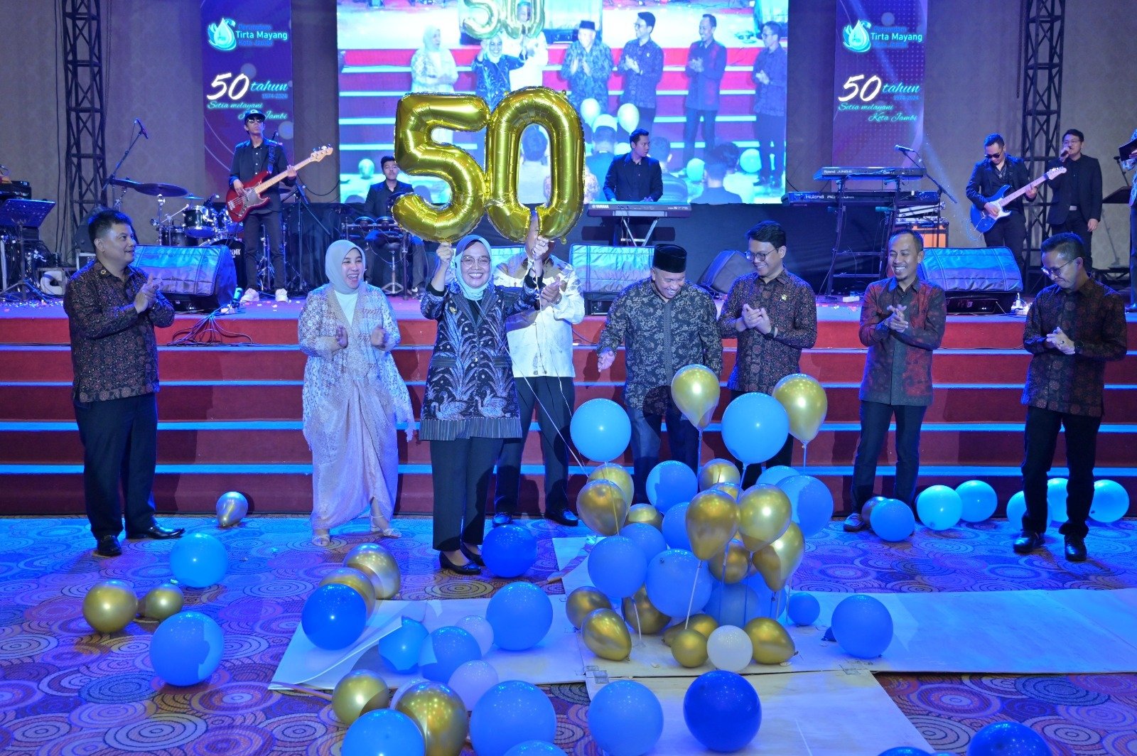 SWARAJAMBI, JAMBI – Penjabat (Pj) Wali Kota Jambi, Sri Purwaningsih menghadiri acara Malam Puncak Hari Ulang Tahun Perusahaan Daerah Air Minum Tirta Mayang Ke-50 tahun 2024 di Ratu Convention Centre, Rabu (31/7/2024) malam.