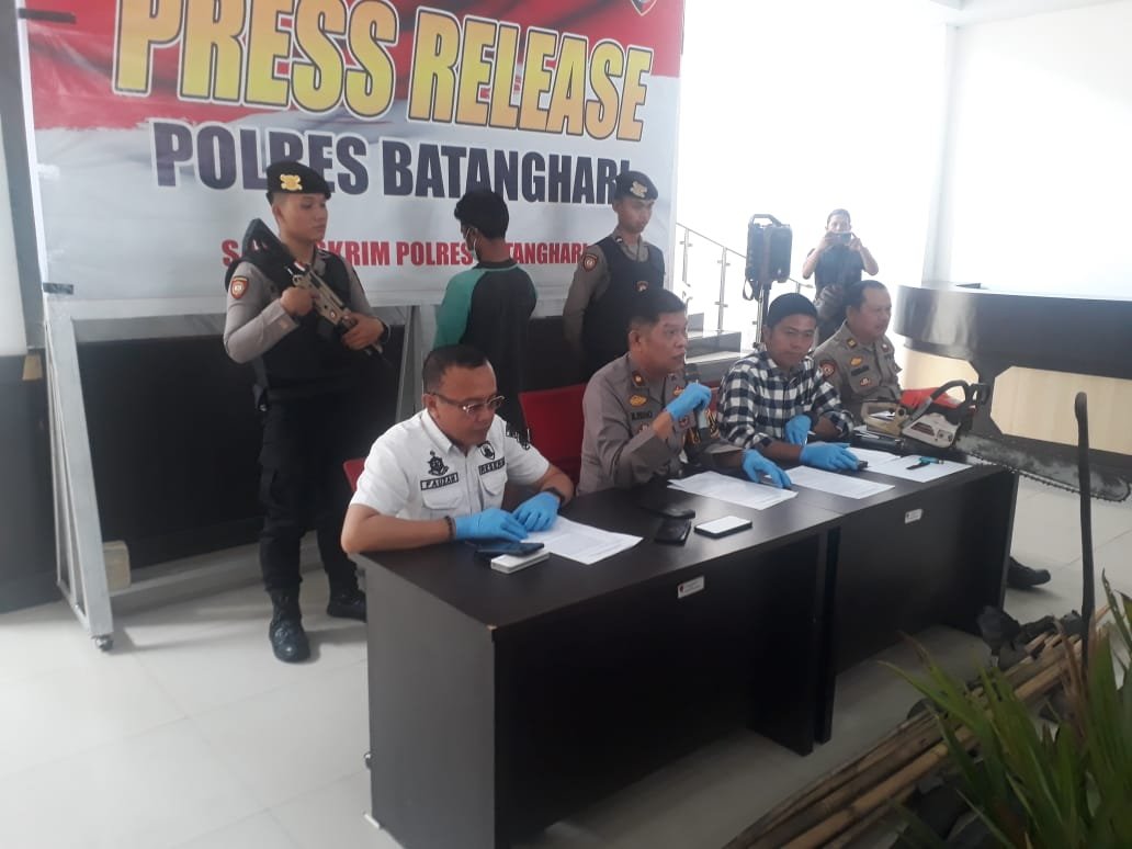 Pada press release tersebut tersangka pelaku RM dihadirkan dengan pengawalan ketat. RM tidak mengenakan rompi khas milik tahanan Polres Batanghari. RM mengenakan kaos dan masker dengan posisi dibelakang Waka Polres Batanghari.