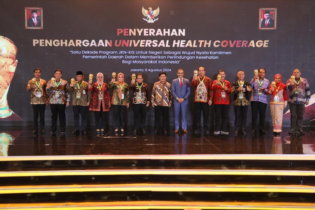Penyerahan penghargaan Universal Health Coverage (UHC Awards) 2024 itu, turut dihadiri Menteri Koordinator Bidang Pembangunan Manusia dan Kebudayaan (Menko PMK) Muhadjir Effendy, jajaran BPJS Kesehatan, serta sejumlah kepala daerah penerima penghargaan.