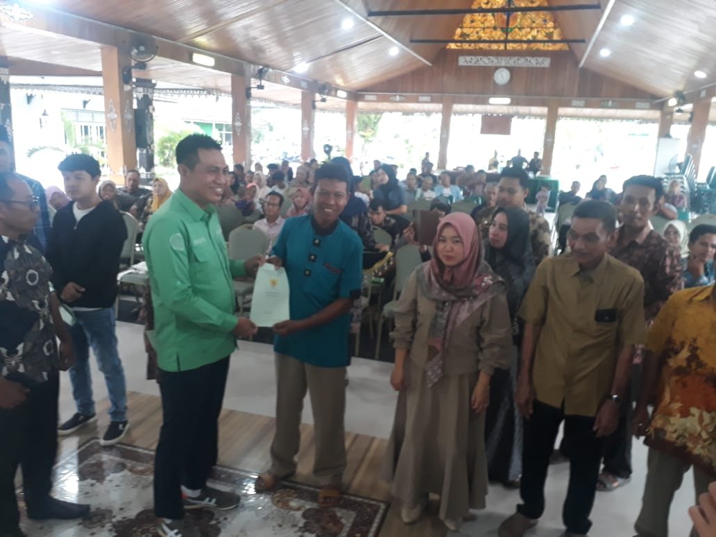 Bupati Fadhil Arief menyerahkan sertifikat tanah program PTSL untuk masyarakat Kecamatan Bathin XXIV.