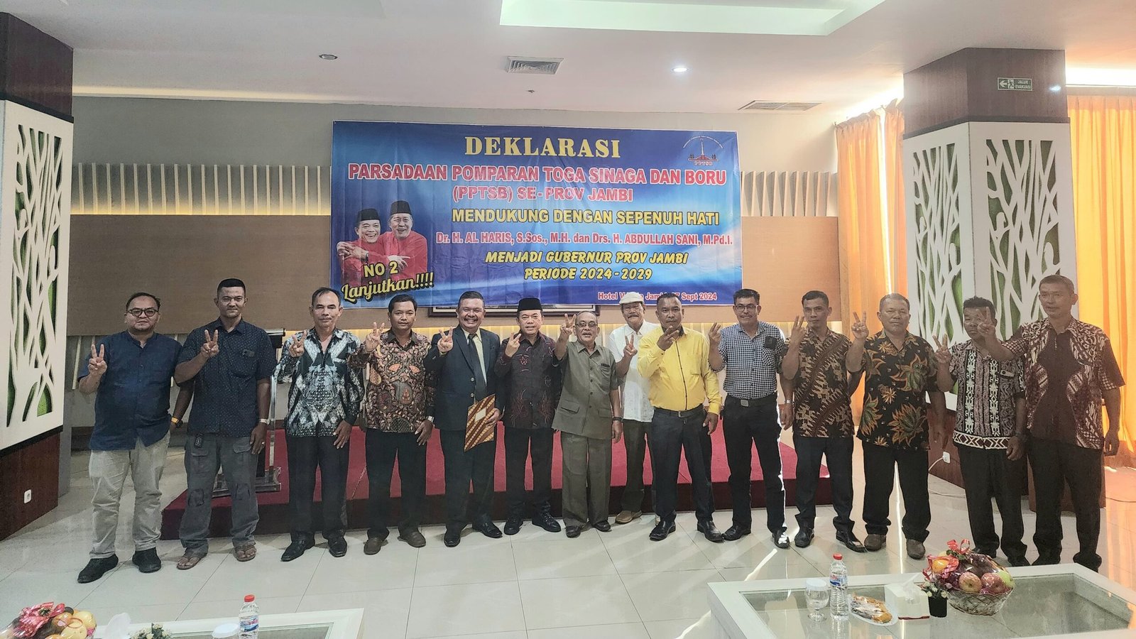 Teranyar dukungan datang Parsadaan Pomparan Toga Sinaga dan Boru (PPTSB) se-Provinsi Jambi untuk Al Haris-Sani kembali melanjutkan Jambi Mantap jilid II.