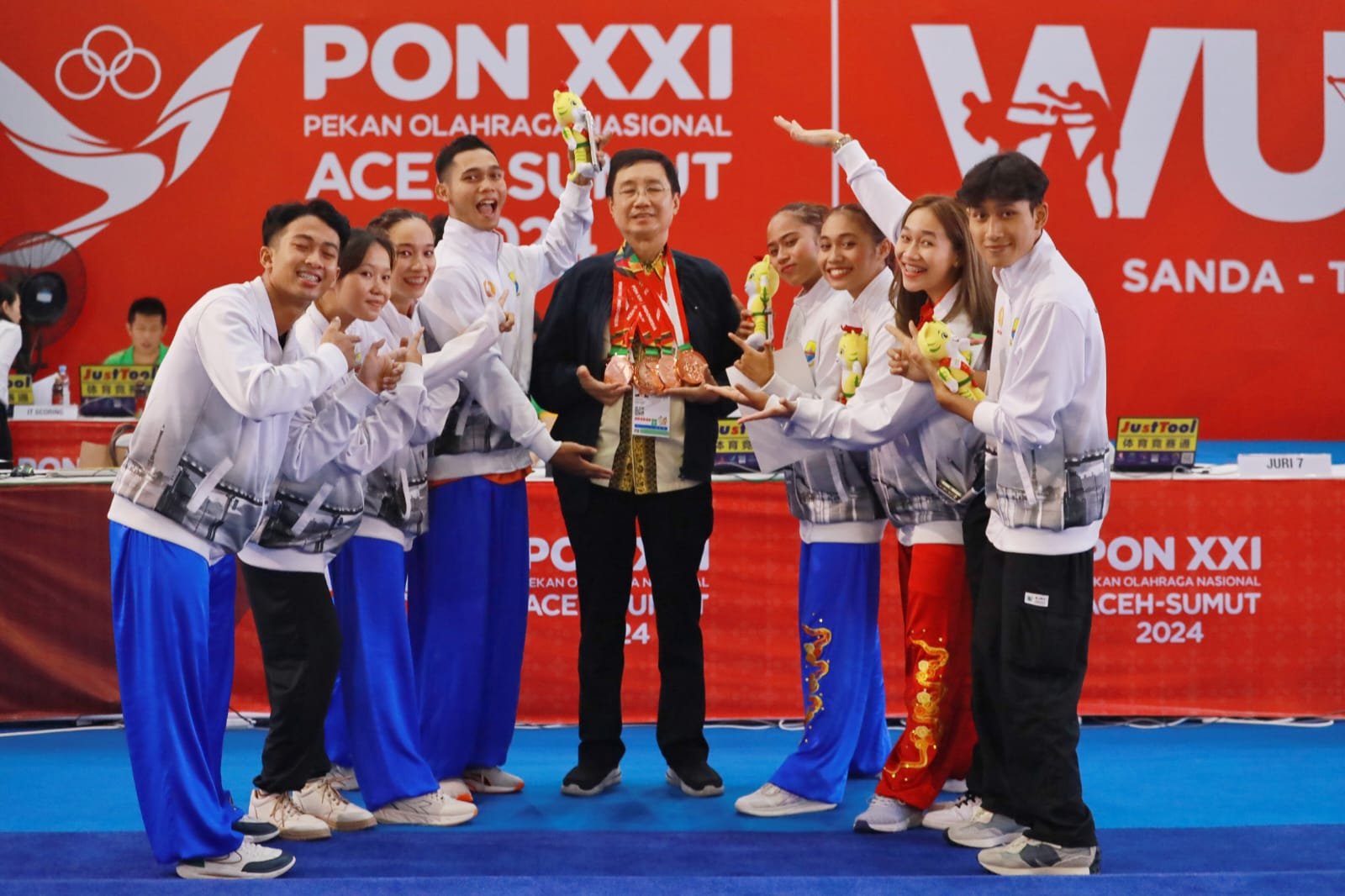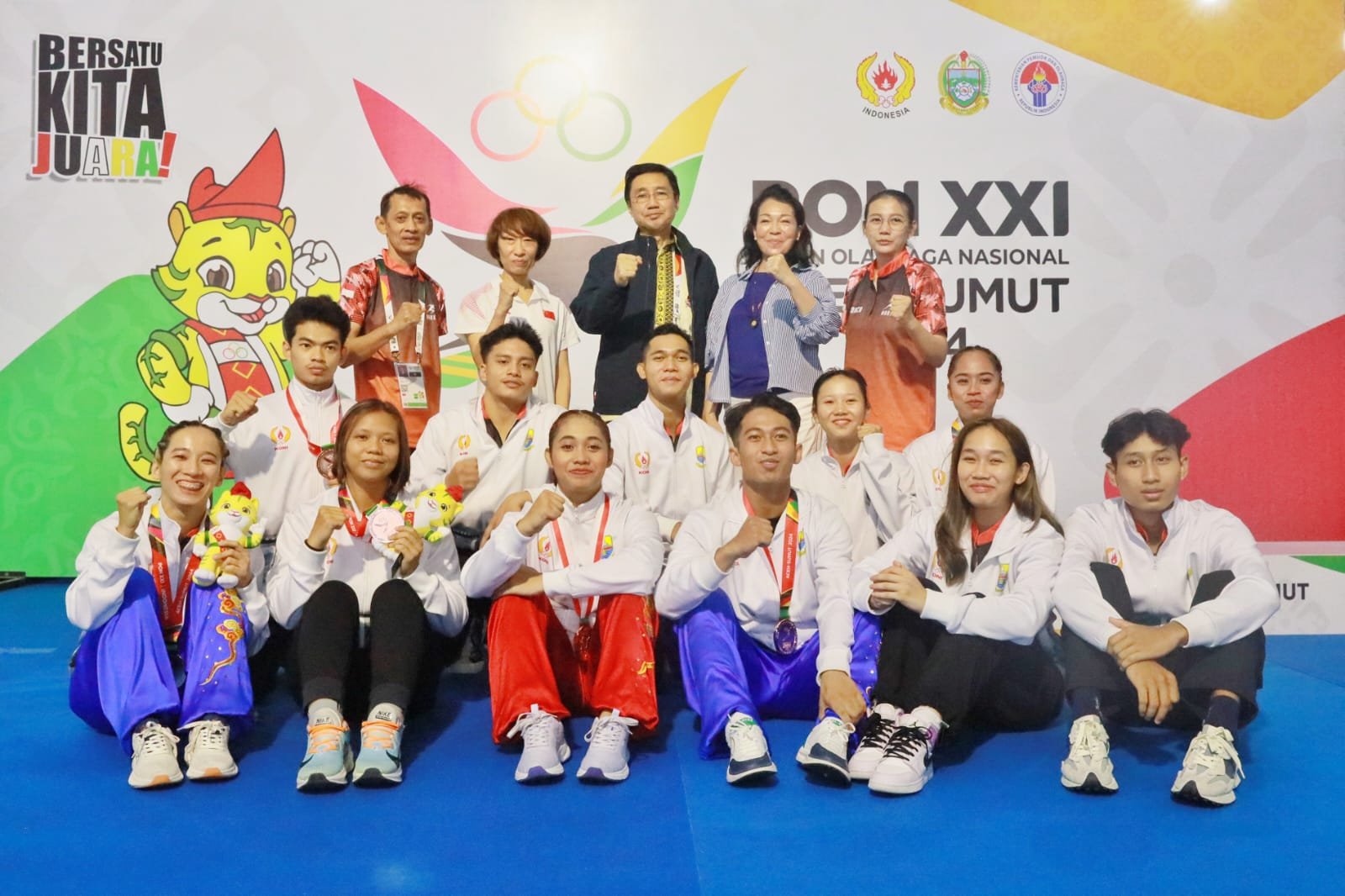 Sedangkan perunggu didulang oleh Veren Aprillia dari nomor jianshu dan qiangshu putri, Sukma Tri Nur Azizah dari nomor wing chun wooden dummy + wing chun butterfly sword putri.