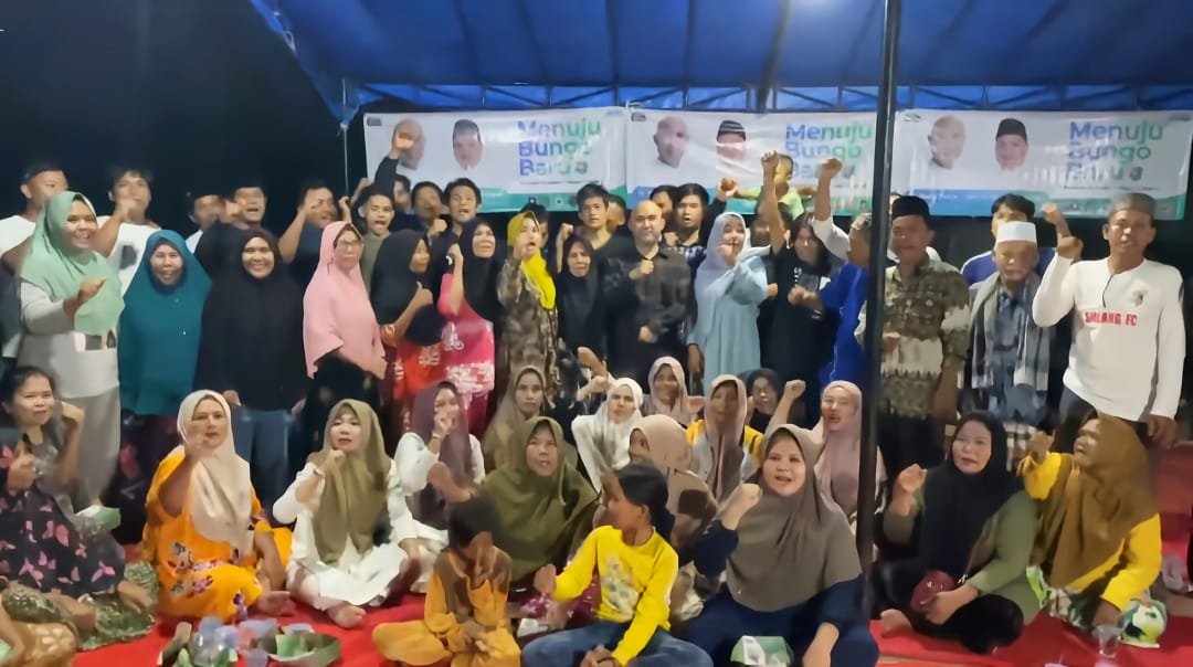 SWARAJAMBI, MUARABUNGO – Masyarakat Dusun Mangun Jayo, Kecamatan Muko-muko Bathin VII, antusias menyambut kunjungan silaturahmi Calon Bupati Bungo H Dedy Putra, S.H, M.Kn.