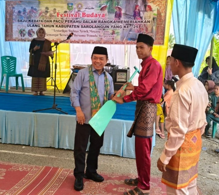 “Tentu saya sangat berterima kasih dengan masyarakat dusun Sarolangun ini yang telah menyelenggarakan festival lomba baju kebaya dan pacu perahu sebagai bentuk mempertahankan atau melestarikan budaya lamo Kito,” tambah Al Haris lagi.
