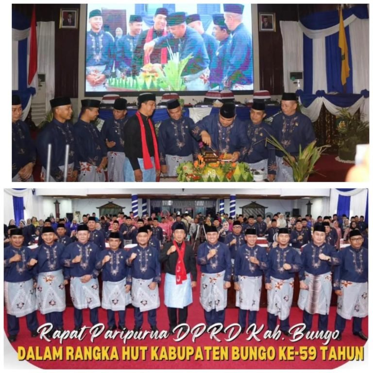 SWARAJAMBI, MUARA BUNGO – Dewan Perwakilan Rakyat Daerah (DPRD)Kabupaten Bungo gelar rapat paripurna Istimewa dalam rangka memperingati Hari Jadi ke-59 Kabupaten Bungo pada Sabtu (19/10/2024).