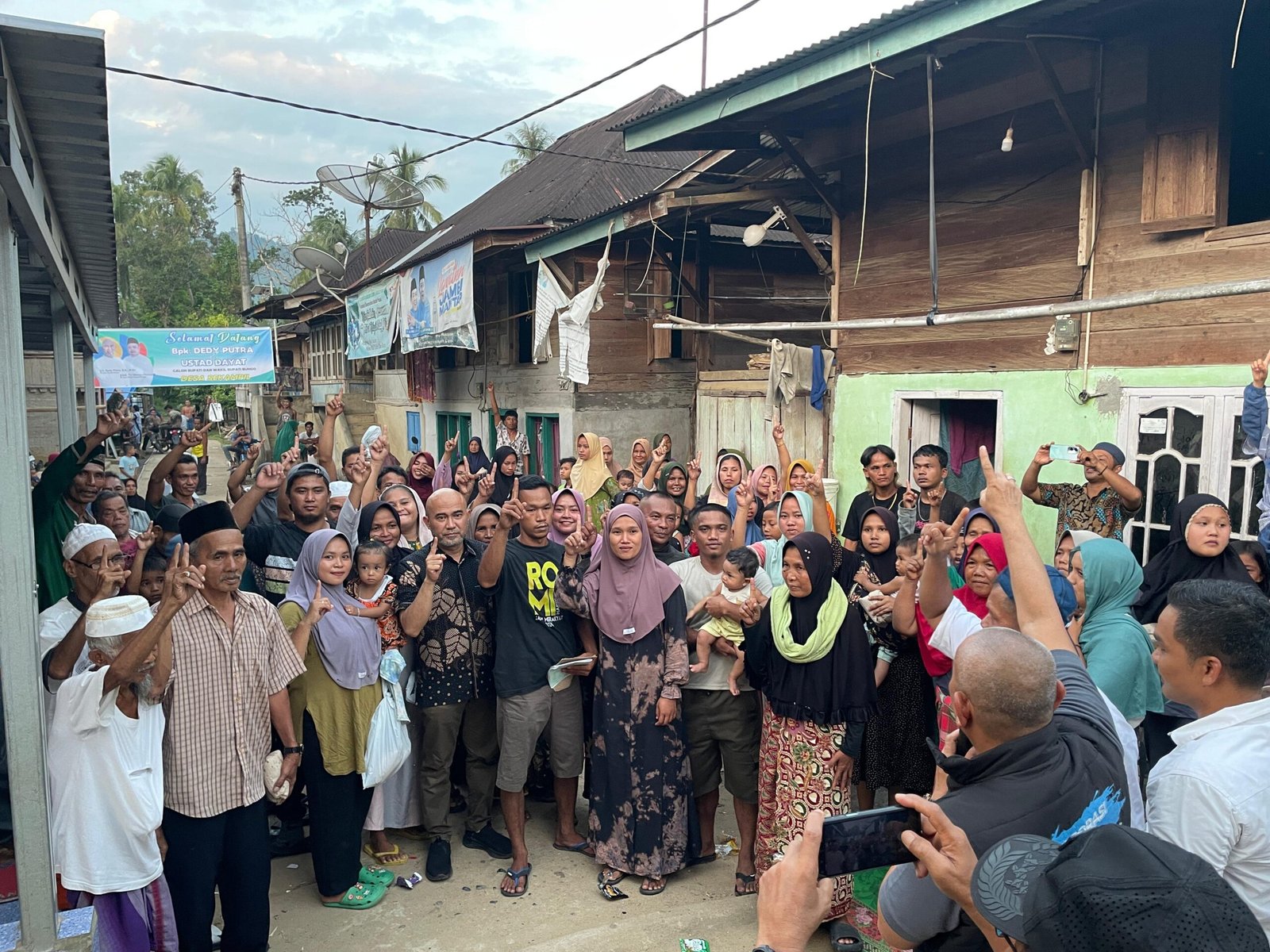 SWARAJAMBI, MUARABUNGO – Emak-emak Dusun Sekampil, Kecamatan Pelepat menyambut hangat kedatangan Calon Bupati Bungo nomor urut 1, H Dedy Putra, S.H., M.Kn.