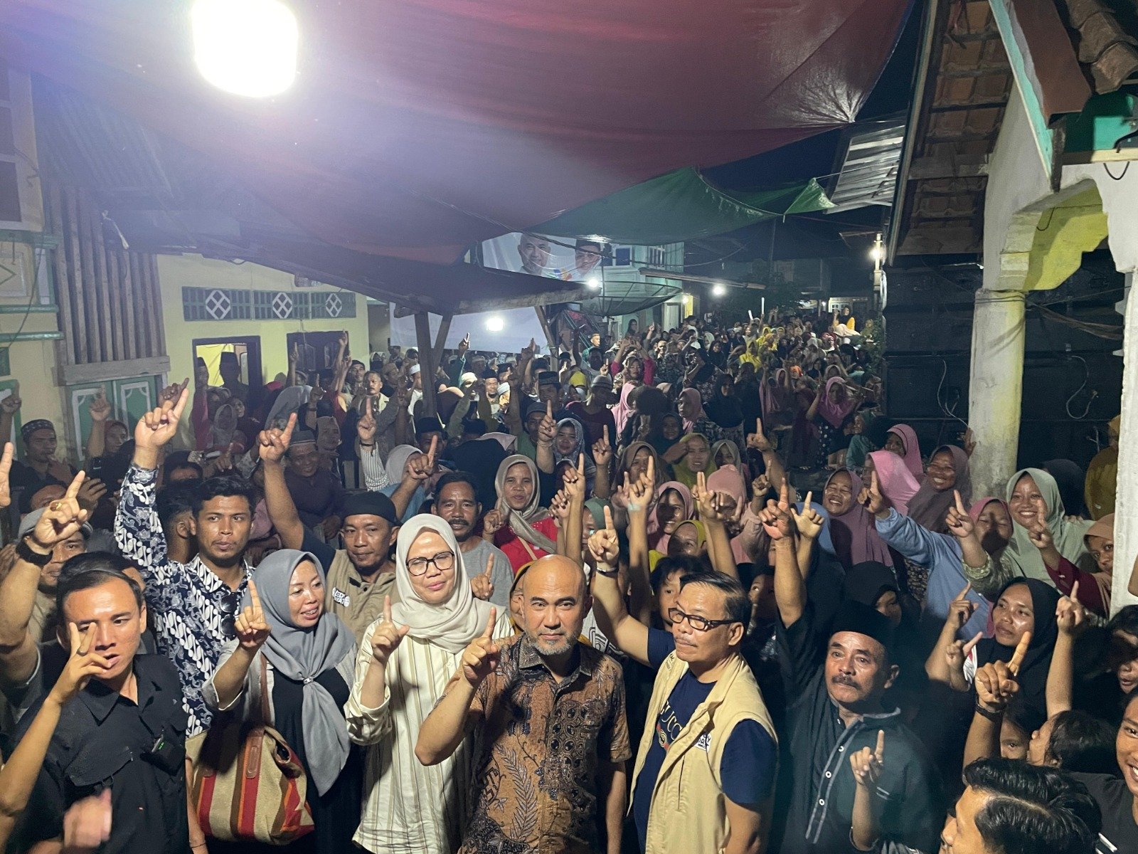 Tumpah ruah masyarakat hadir dalam acara pertemuan bersama Cabup 01 Dedy Putra. Mereka sangat antusias menyambut kedatangan pria yang akrab disapa Cik Dedy itu. Tak sedikit dari masyarakat yang berebut untuk bersalaman dan berfoto bersama Dedy.