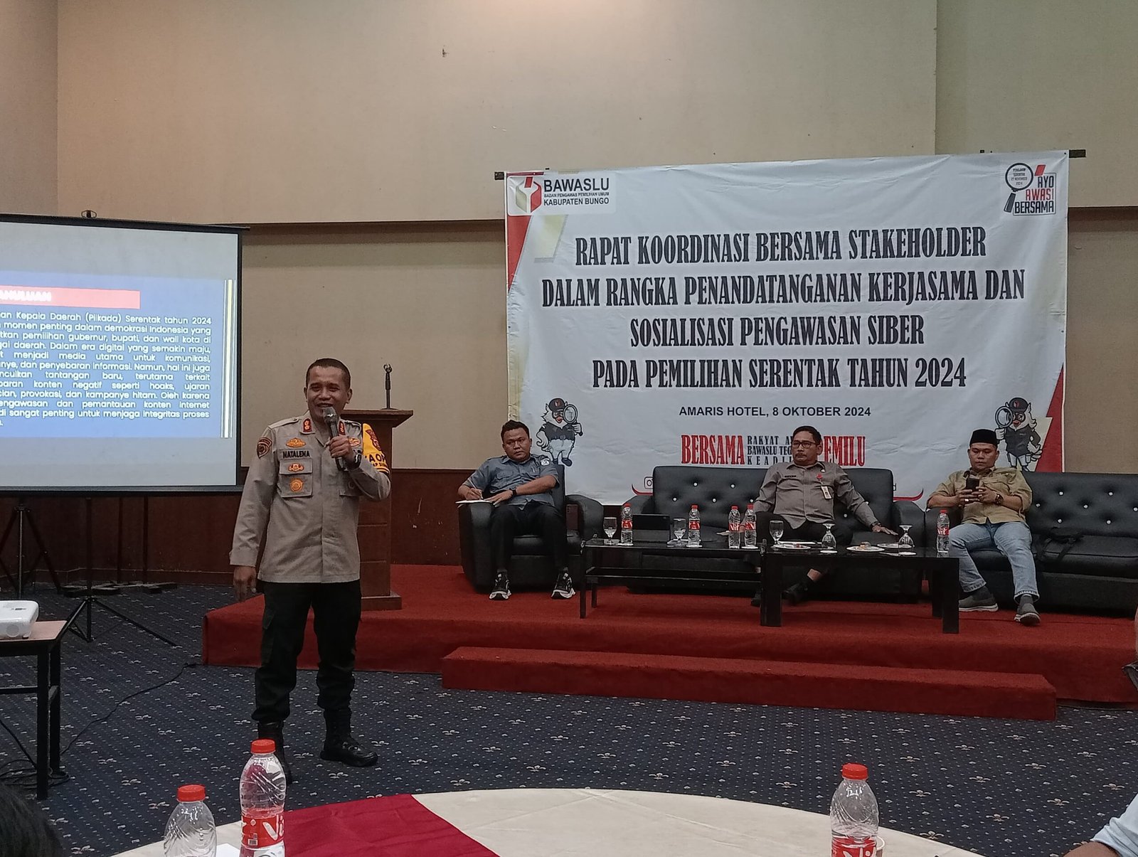 Dalam kesempatan ini Kapolres bungo AKBP Natalena Eko cahyono sebagai pemateri, dalam sambutannya Kapolres Bungo menekankan pentingnya pengawasan siber di era digital ini, terutama di masa pemilu yang rentan terhadap penyebaran hoaks, kebencian, dan ancaman serangan siber.