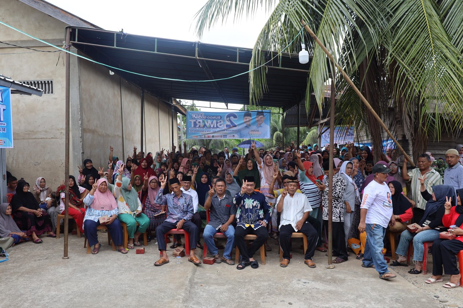 “Bang Jon, bang Jon! Kami coblos nomor duo isok bang,” teriak Mila, salah satu emak-emak yang berada di lokasi.