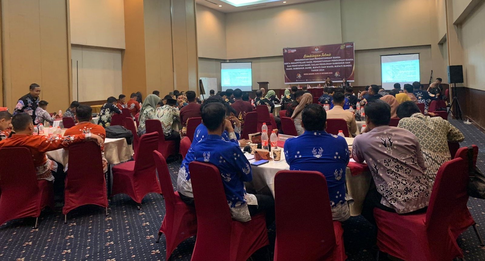 SWARAJAMBI, MUARABUNGO – Komisi Pemilihan Umum (KPU) Kabupaten Bungo menggelar kegiatan Bimbingan Teknis (Bimtek) terkait Pemungutan dan Penghitungan Suara serta Rekapitulasi Hasil Penghitungan Perolehan Suara dan Penetapan Hasil dalam Pemilihan Gubernur dan Wakil Gubernur Jambi, serta Bupati dan Wakil Bupati Bungo Tahun 2024. Bimtek ini digelar di aula Amaris hotel Bungo, Rabu (23/10/2024).