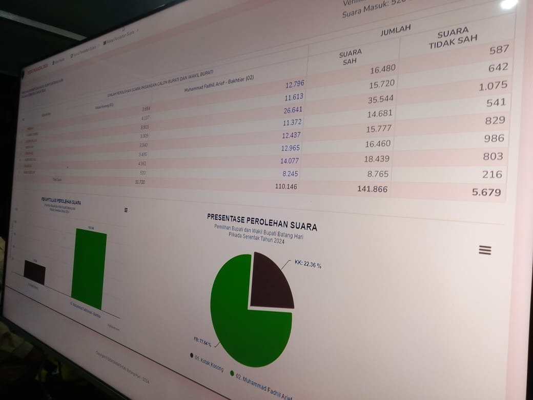 Paslon Fadhil-Bakhtiar sudah dipastikan menang pada Pilkada Batanghari tahun 2024 ini, namun yang belum dapat dipastikan persentase kemenangan petahana ini di Kabupaten Batanghari.