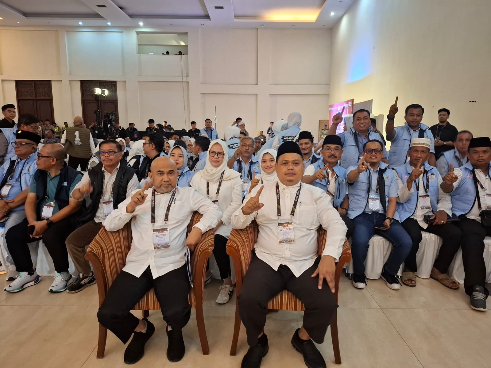 SWARAJAMBI, MUARABUNGO –Calon Bupati dan Calon Wakil Bupati Bungo nomor urut 01, Dedy Putra dan Tri Wahyu Hidayat, tiba di lokasi acara debat perdana Pemilihan Kepala Daerah (Pilkada) Bungo di Hotel Semagi Muara Bungo, Sabtu (2/11/2024) malam.