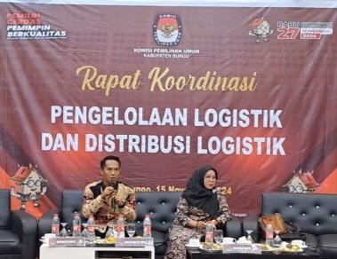 SWARAJAMBI, MUARABUNGO-Jelang Pemilihan Kepala Daerah serentak yang akan dihelat pada 27 November 2024 mendatang. KPU Kabupaten Bungo melaksanakan rapat koordinasi pengelolaan logistik dan Distribusi Logistik pada pemilihan kepala daerah Bungo Tahun 2024.