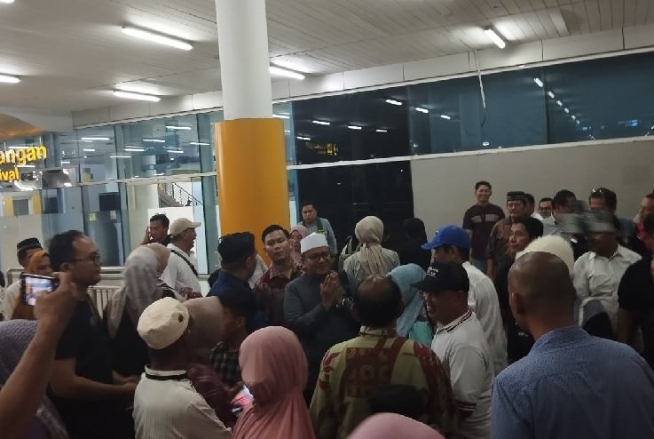 Pulang dari Umrah, Masyarakat Kota Jambi Antusias Sambut Maulana di Bandara Sultan Thaha
