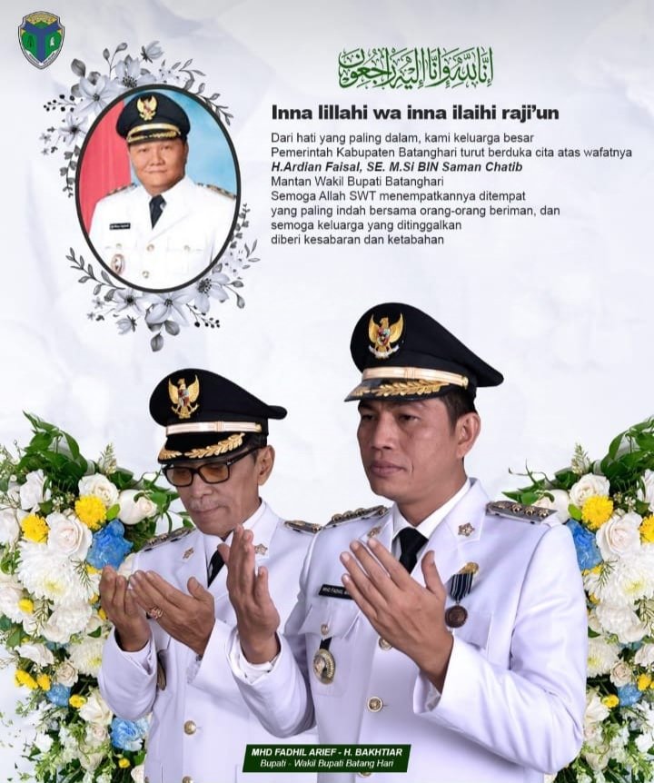 “Dalam hati yang paling dalam, kami keluarga besar Pemerintah Kabupaten Batanghari turut berduka cita atas wafatnya H Ardian Faisal SE MSi bin Saman Chatib mantan Wakil Bupati Batanghari. Semoga Allah SWT menempatkannya ditempat yang paling Indah bersama orang-orang beriman. Dan semoga keluarga yang ditinggalkan diberi kesabaran dan ketabahan.”