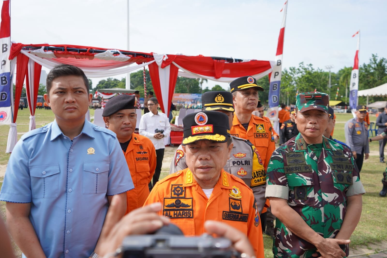 Dalam sambutan dan arahannya, Gubernur Al Haris memberikan apresiasi kepada seluruh stakeholder yang terlibat, beserta seluruh peserta Apel Kesiapsiagaan.