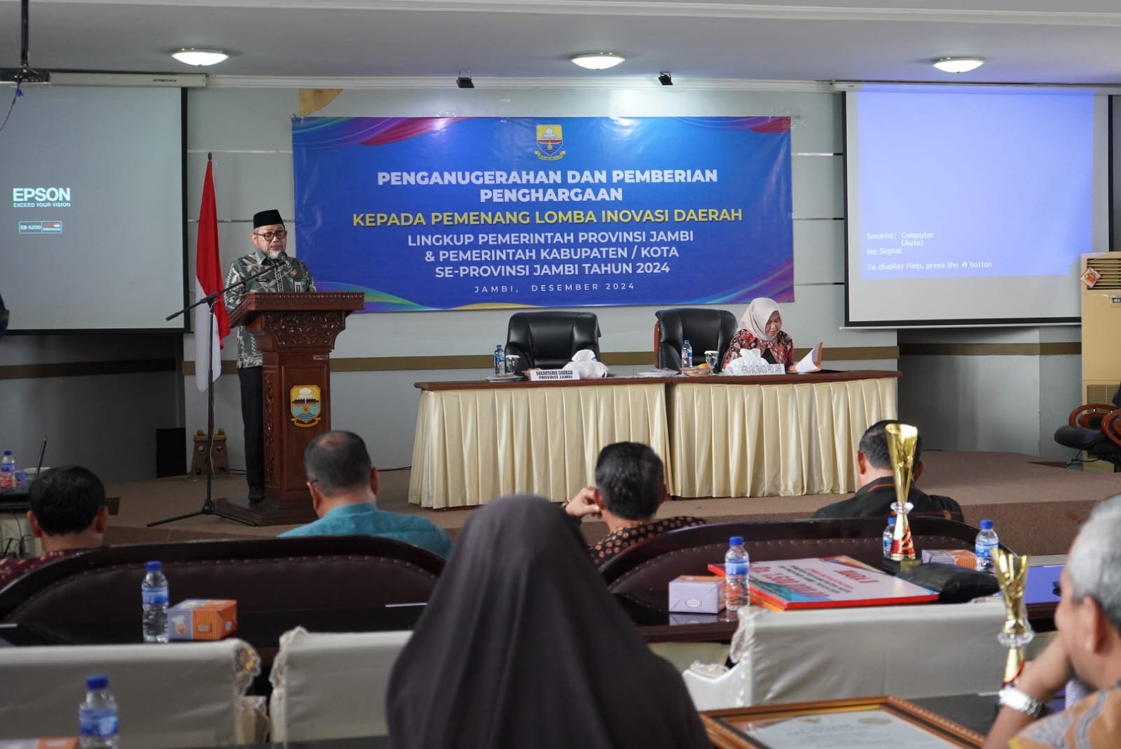 “Untuk Tahun 2023 peringkat Provinsi Jambi berada pada nomor 27 nasional. Alhamdulillah, pada Tahun 2024 Provinsi Jambi masuk dalam kategori Inovatif dengan peringkat ke-13 Nasional. Melalui acara ini, saya juga sangat berharap kepada masing-masing Perangkat Daerah, ditahun mendatang harus mengusulkan minimal 2 Inovasi dan diharapkan seluruhnya mengikuti Lomba Inovasi Daerah (IID), karena dengan semakin banyaknya inovasi akan mendorong pelaksanaan pemerintahan daerah dan pelayanan publik semakin baik. Selain itu, kita juga dapat meningkatkan skor Indeks Inovasi pada Penilaian Innovative Government Award (IGA) yang diselenggarakan oleh BSKDN, dan penilaian Inovasi Pelayanan Publik (SINOVIK) yang diselenggarakan oleh Kemenpan-RB setiap tahun,” tutupnya.