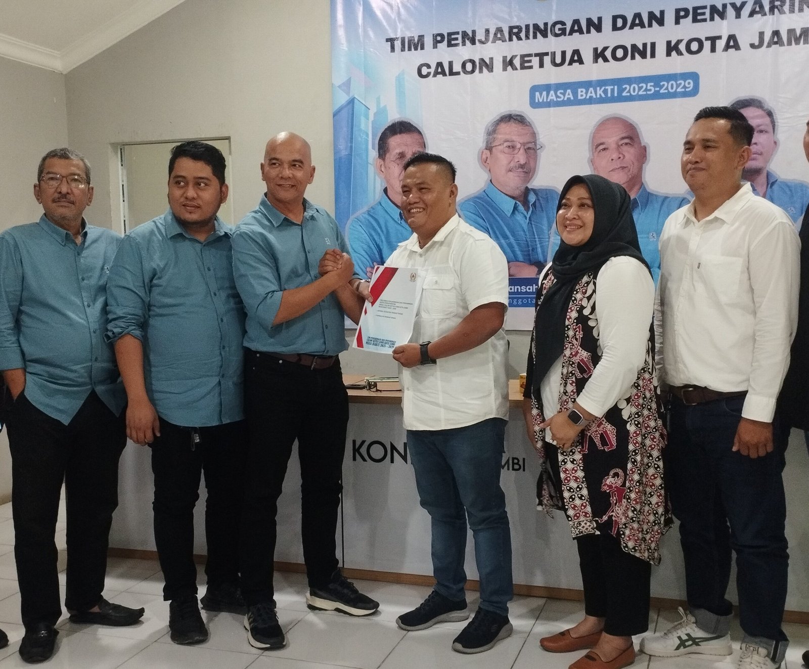 Bakal calon Ketua KONI Kota Jambi periode 2025-2029 Dr Wendri Maryadi dan Antoni Gumay serempak mengembalikan pendaftaran berkas formulir di Sekretariat TPP KONI Kota Jambi.