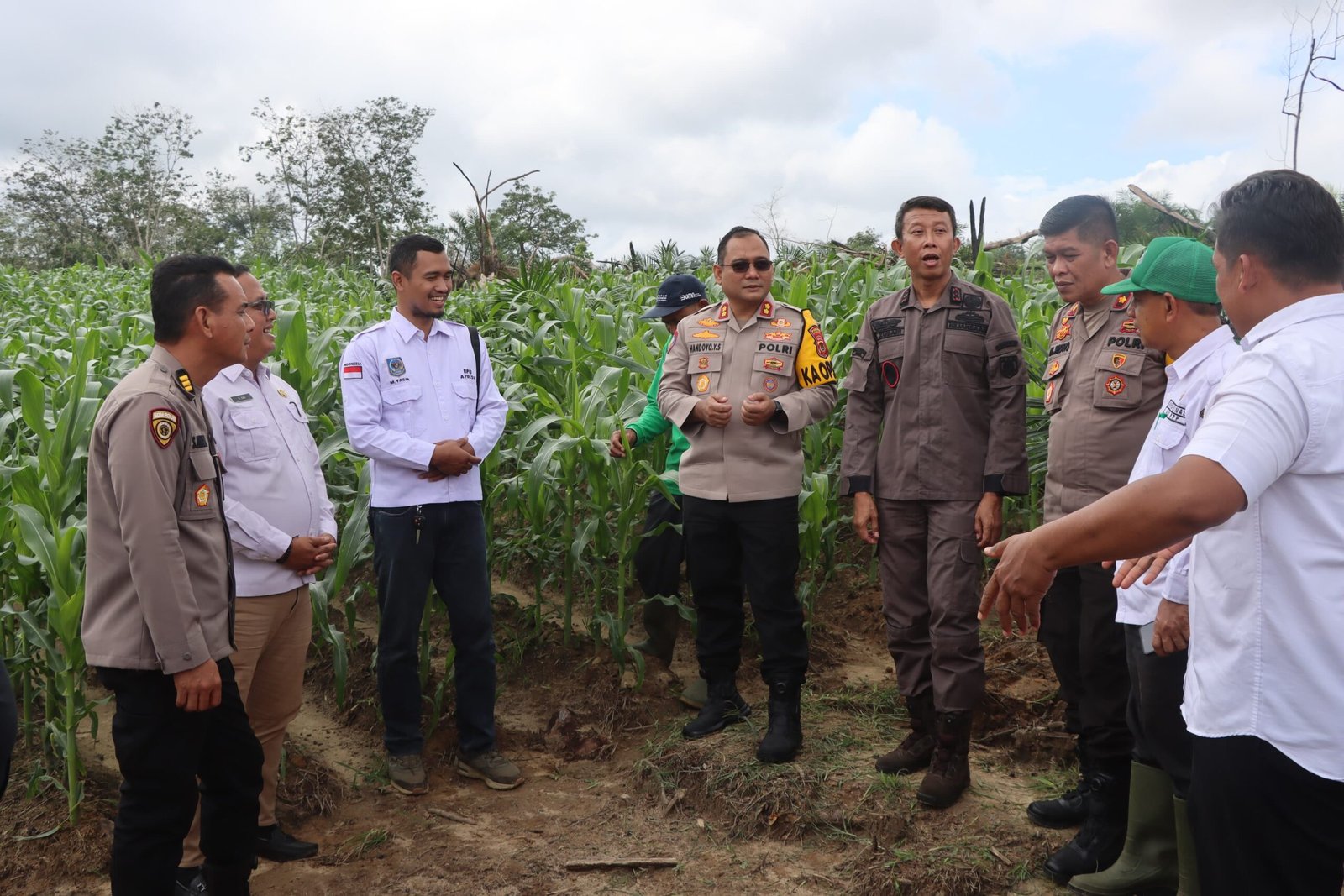 SWARAJAMBI.NET, BATANGHARI – Kapolres Batanghari AKBP Handoyo Yudhi Santosa meninjau langsung kebun jagung di Desa Pompa Air Kecamatan Bajubang dan Desa Sungaibuluh Kecamatan Muarabulian, Rabu (26/2/2025).