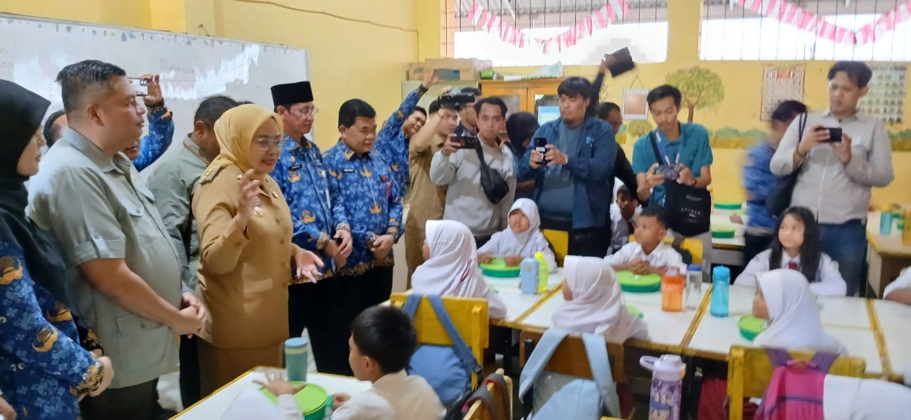 Saat meninjau kegiatan tersebut di SD Negeri 66, Sri terlihat senang melihat antusiasme para siswa yang menikmati hidangan bergizi yang disediakan.