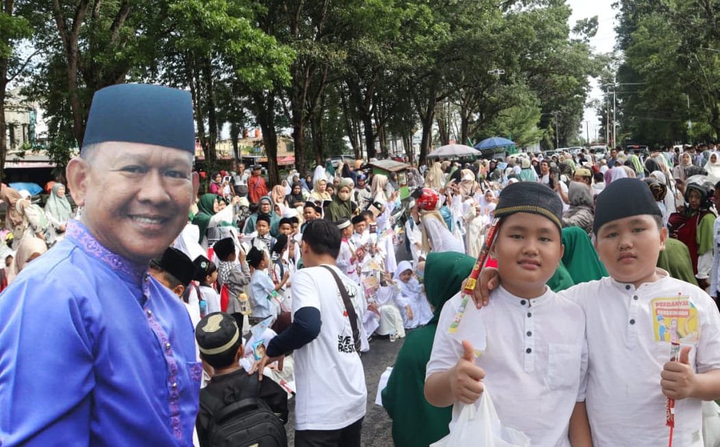 Wabup H A Khafid Moein mengapresiasi pawai akbar yang digelar ribuan murid Sekolah Dasar Islam Terpadu (SD-IT) Permatahati dan Insan Mulia, dalam menyambut datangnya bulan suci Ramadan 1446 H.