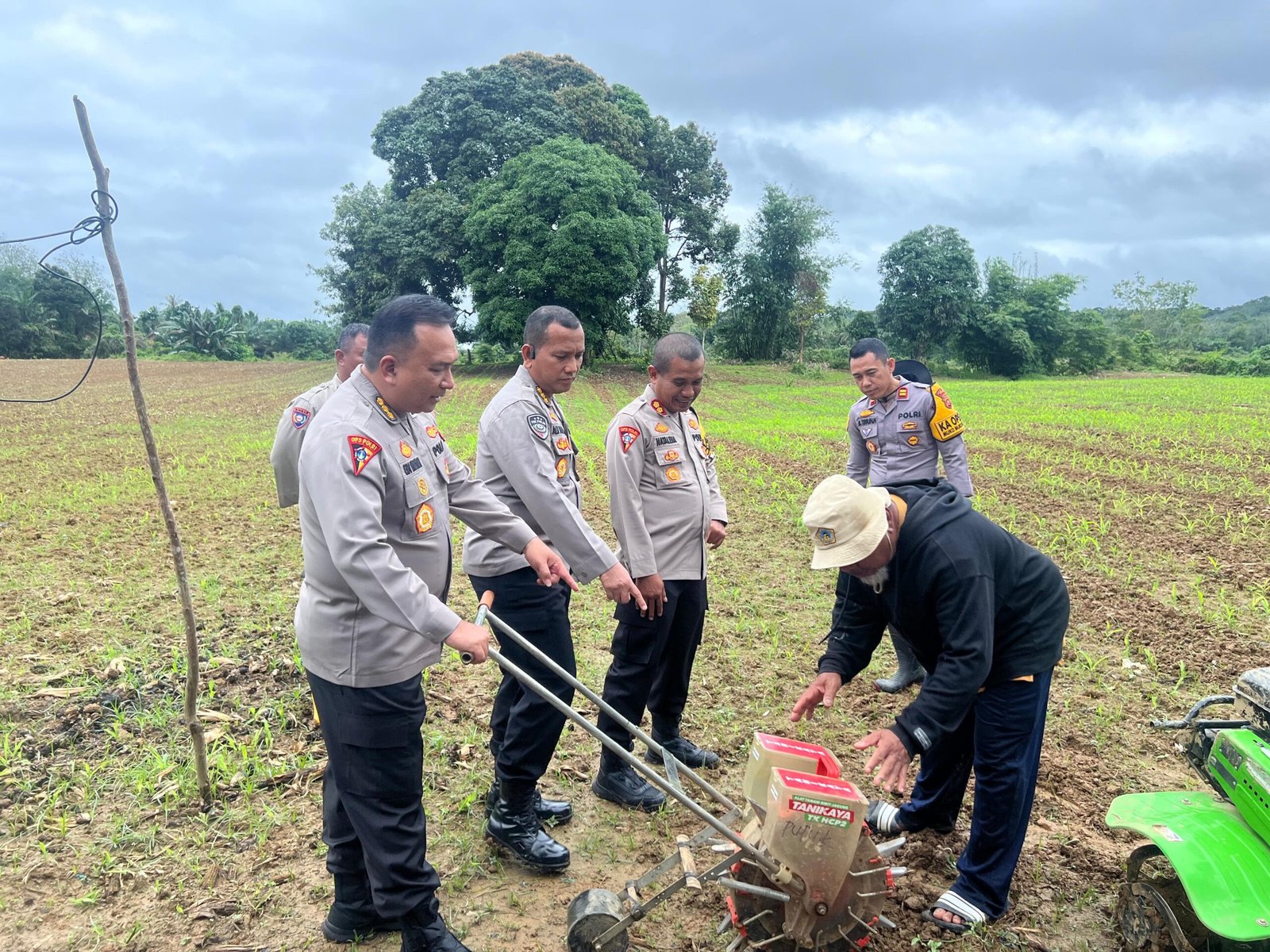 Kapolres Bungo AKBP Natalena Eko Cahyono mendampingi Karo Ops Polda Jambi Kombes Pol M.Edy Faryadi dan Kabid TI Polda Jambi Kombes Pol Muhammad Ali Hadinur mengecek lahan Jagung di Dusun Suka Jaya Kecamatan Muko Muko Bathin VII.