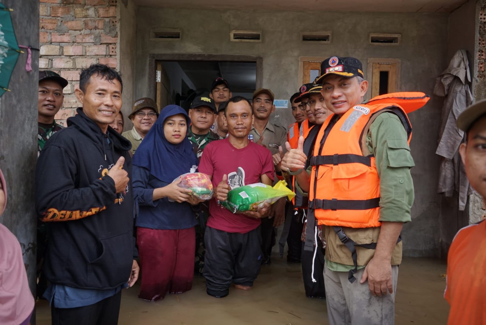 Wakil Bupati Kabupaten Muaro Jambi Junaidi H. Mahir meninjau warga Desa Pudak Kecamatan Kumpeh Ulu dan warga Desa Kunangan Kecamatan Taman Rajo yang terdampak bencana banjir, Jum'at, (14/3/2025).