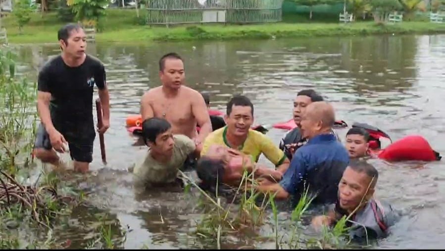 “Kita tiba di TKP sekitar pukul 06.29, warga sudah ramai. Kami langsung melakukan pencarian dengan cara penyelaman menggunakan alat resque seadanya,” ujar Kabid Penyelamatan Dinas Damkarmat Batanghari, Jasmin.