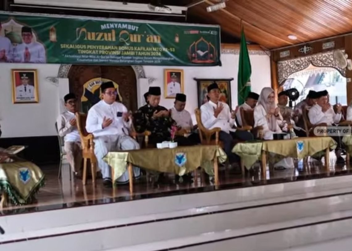 Bupati Batanghari Mhd Fadhil Arief dan Wakil Bupati Bakhtiar menghadiri peringatan Nuzul Quran yang berlangsung di Serambi Rumah Dinas Bupati Batanghari.