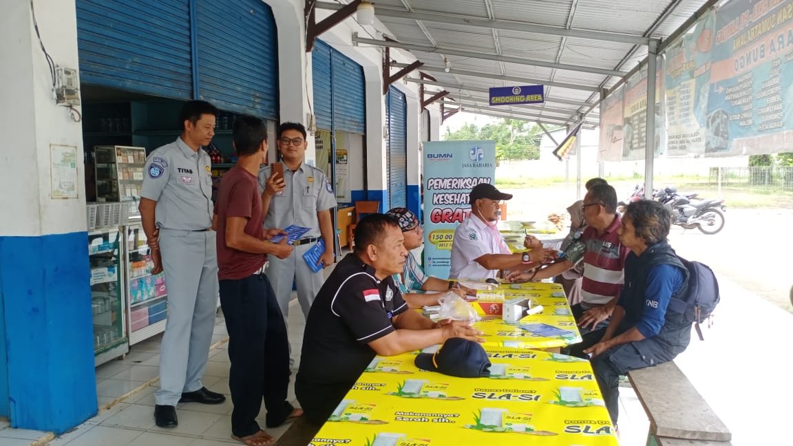 Jasa Raharja Cabang Muara Bungo melaksanakan program pengobatan gratis melalui Mobile Unit Keselamatan Lalu Lintas (MUKL) kepada sopir, kru bus, serta penumpang bus yang hendak melaksanakan mudik dengan menggunakan sarana transportasi bus.