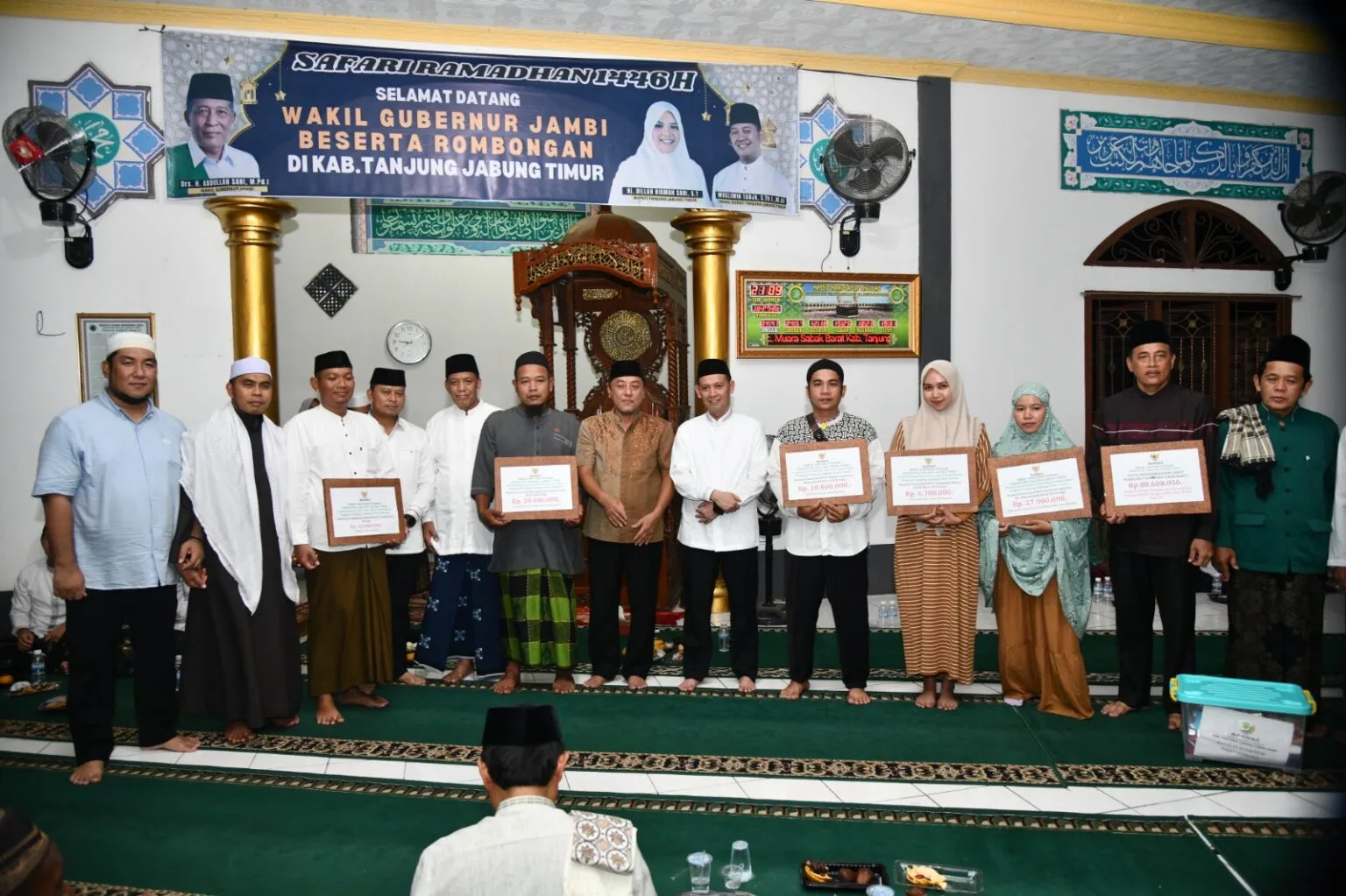Pemkab Tanjung Jabung Timur menggelar kegiatan Safari Ramadhan 1446 H perdana di Kecamatan Muarasabak Barat di Masjid Nahdatul Thulab Kelurahan Talang Babat, Jum’at 7 Maret 2025.