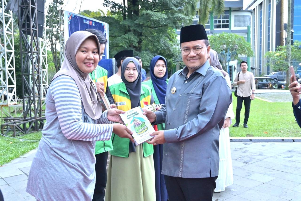 Wali Kota Maulana bersama Wakil Wali Kota Diza melakukan penyerahan secara simbolis waqaf Al-Qur'an dari Yayasan Kesejahteraan Madani kepada masyarakat penerima.
