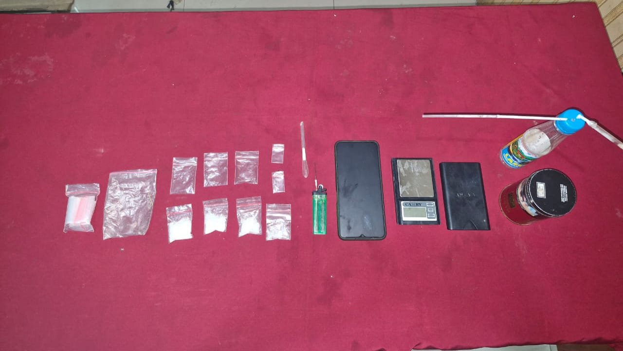Barang Bukti yang diamankan adalah 4 paket sabu (11 gram), 6 plastik klip kosong, Bong lengkap dengan pirek dan pipet, sendok sabu dari pipet, korek api dengan jarum. Kemudian timbangan digital merek Camry dan kaleng rokok berisi perlengkapan sabu.