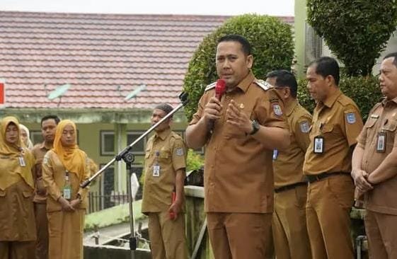 Bupati Merangin H M Syukur memimpin apel kedisiplinan di halaman depan Rumah Sakit Daerah Kol Abundjani Bangko, Selasa (8/4/2025).