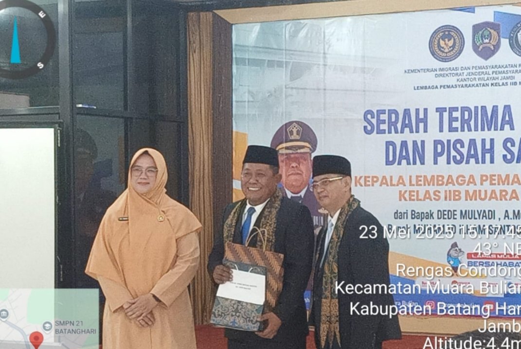 SWARAJAMBI.NET, BATANGHARI – Lembaga Pemasyarakatan (Lapas) Kelas IIB Muarabulian resmi memiliki pemimpin baru. Dalam serah terima jabatan (Sertijab) yang berlangsung dengan khidmat di Aula Lapas Muarabulian, Muhammad Ilham Santoso Sahdani secara resmi menggantikan Dede Mulyadi sebagai Kepala Lapas Muarabulian, Jumat (23/5/2025).