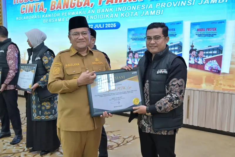SWARAJAMBI.NET,JAMBI – Wali Kota Jambi Maulana, hadir langsung dalam kick off Modul Praktik Berbasis Proyek Cinta, Bangga, dan Paham (CBP) Rupiah di Aula Griya Mayang, Rumah Dinas Wali Kota, Selasa (22/7/2025).