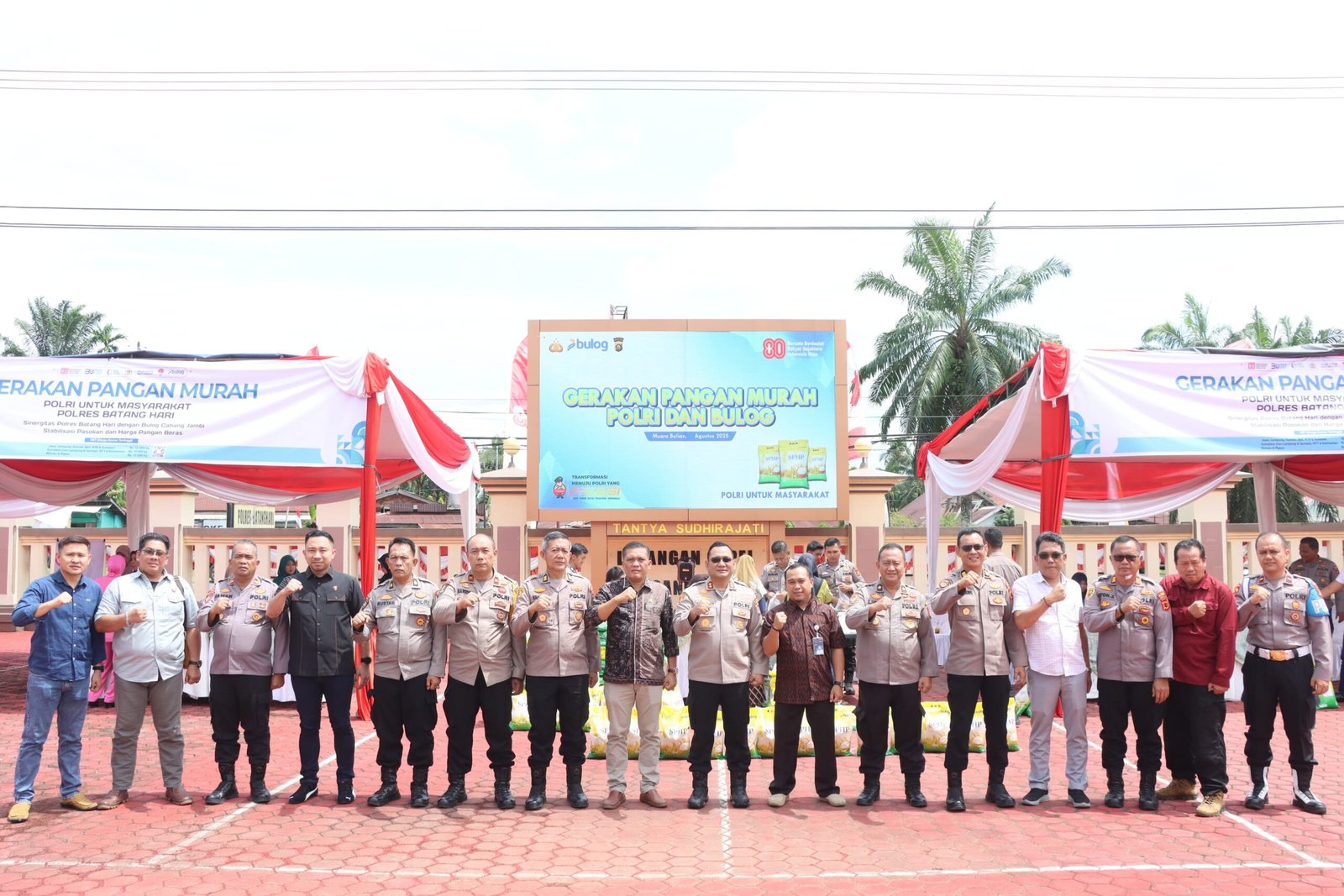 SWARAJAMBI.NET, BATANGHARI – Polres Batang Hari menggelar Gerakan Pangan Murah (GPM) Polri untuk masyarakat di lapangan Laghwa Wicaksana Mapolres Batang Hari, Kamis (14/8/2025). Lewat program nasional Polri ini, Polres Batang Hari bisa membantu masyarakat memperoleh bahan kebutuhan pokok dengan harga terjangkau, sekaligus menjaga stabilitas harga pangan di wilayah.