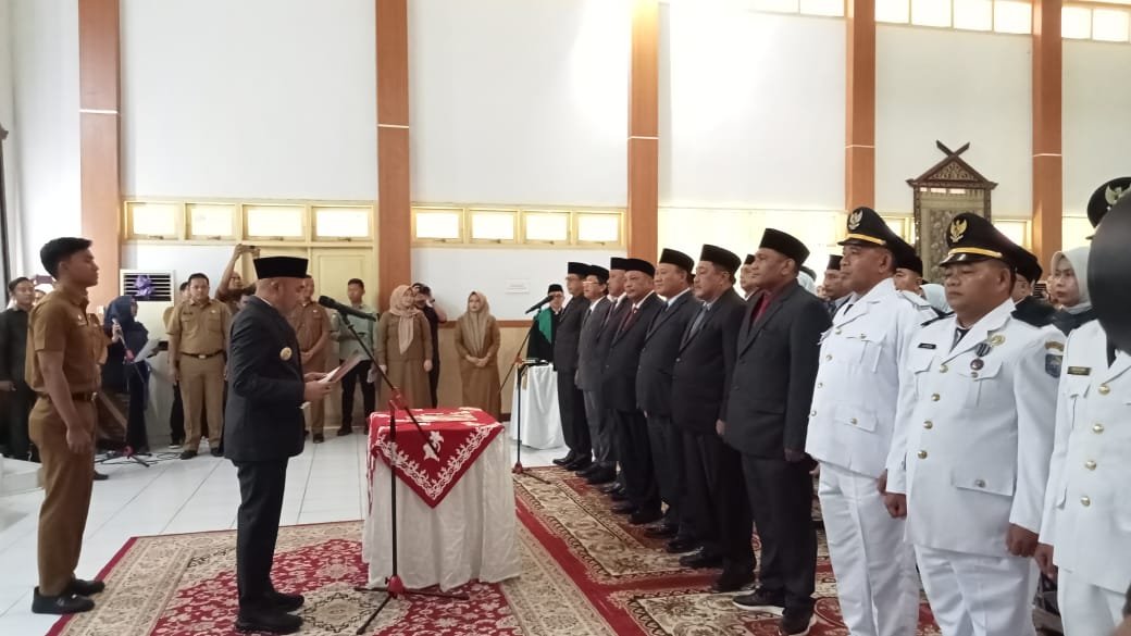 SWARAJAMBI.NET, MUARABUNGO – Sebanyak 43 pejabat di lingkungan Pemerintah Kabupaten Bungo dilantik dan diambil sumpah janjinya oleh Bupati Bungo Dedy Putra, Senin (12/1/2026). Para pejabat tersebut dilantik bersama-sama di Ruang Pola Kantor Bupati Bungo.