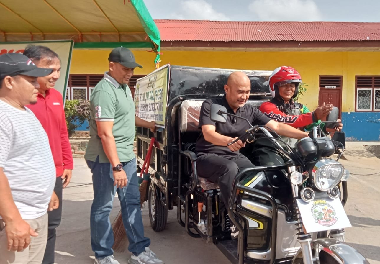 Acara berjalan dengan lancar dengan diakhiri penyerahan bantuan motor roda tiga kepada operator pengangkut sampah dan foto bersama.