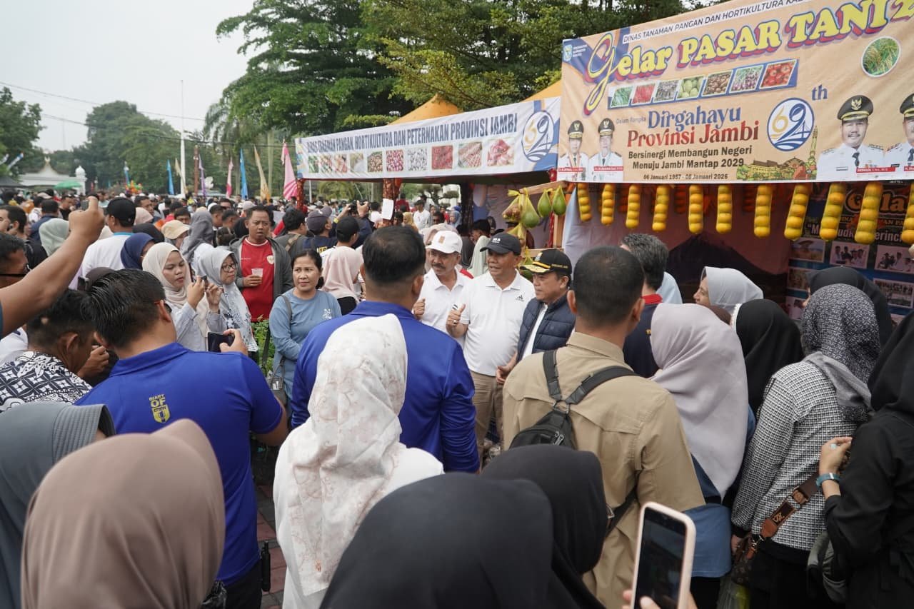 Gubernur Al Haris menjelaskan, Pasar Tani menjadi bukti nyata bahwa Provinsi Jambi memiliki potensi pertanian yang sangat luar biasa. Beragam komoditas seperti sayuran, buah-buahan, hingga hasil perkebunan dipamerkan dan dijual langsung oleh petani kepada masyarakat.