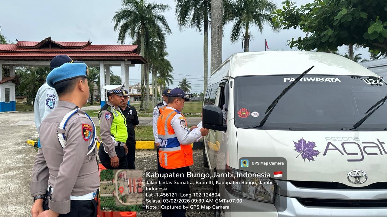 Kegiatan ramp chek tersebut digelar di Terminal Bus Tipe A, Jalan Lintas Sumatera, Manggis, Kecamatan Bathin III, Kabupaten Bungo, pada Selasa (3/2/2026).