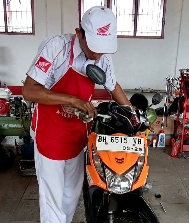 Antusiasme juga terlihat dari pihak sekolah. Pada hari pertama pelaksanaan kegiatan, Kepala SMKN 3 Jambi, Bapak Tholip, turut menserviskan sepeda motor Honda BeAT miliknya di Pos Service AHASS yang berlokasi di Gedung TEFA SMKN 3 Jambi pada 3 Maret 2026.